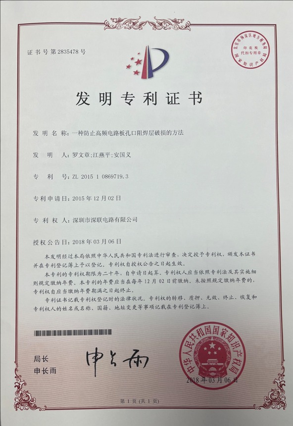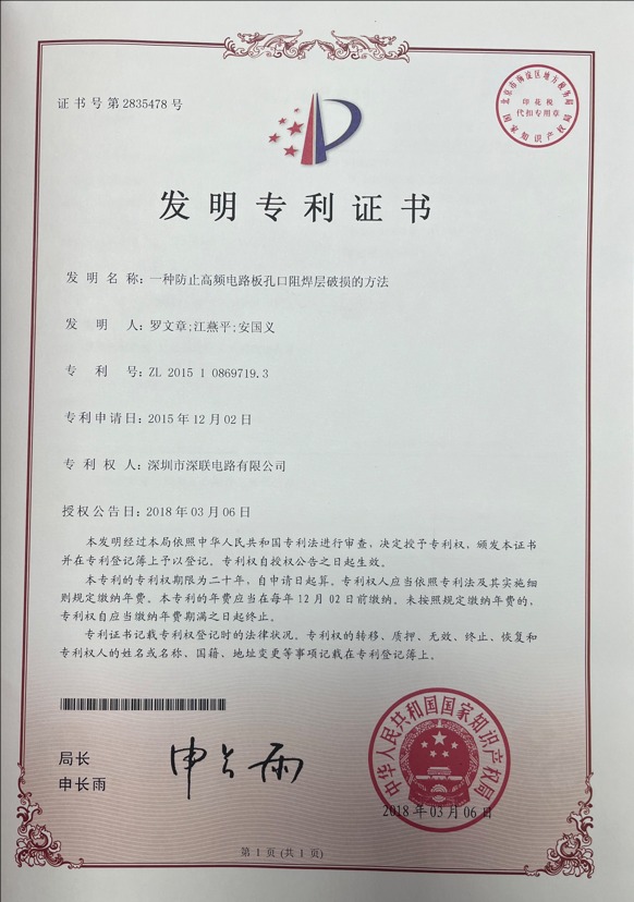 The invention relates to a method for preventing damage of solder resistance layer at the orifice of a high-frequency circuit board